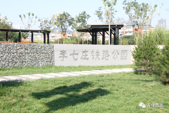 李七庄铁路公园全长3.45公里,占地14.3公顷,绿化总面积8万平方米,分为文化体验、生态休闲、健康活动三大功能区。在建设过程中,西青区把李港铁路废弃设施变废为宝,在原铁路上进行了塑木铺装,见缝插绿,因地制宜,形成了集生态涵养、历史印记、健身休闲为一体的城市绿洲。