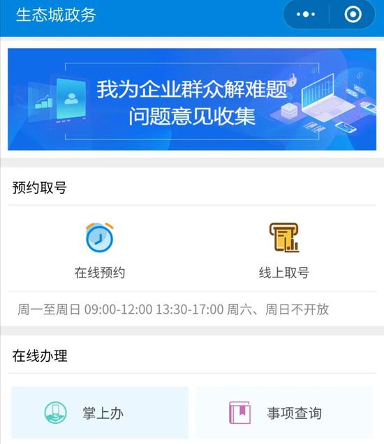 目前,“生态城政务”小程序与生态城政务服务中心智能工作台已经实现了线上线下联动,办事人可以在手机端随时随地完成12项高频事项的掌上申报。