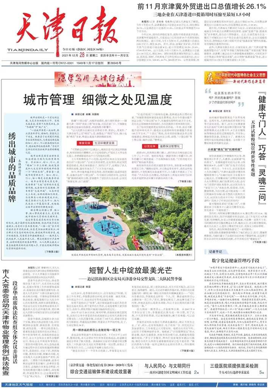 “让人民群众在城市生活得更方便、更舒心、更美好。”天津在细节上花“绣花”心思、细微处下“绣花”功夫、细小处做“绣花”文章,塑造出美丽天津的精致容颜。