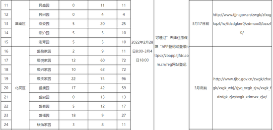 登记时间为2022年2月28日8:00-3月4日18:00,可通过“天津住房保障”APP登记或登录https://zbapp.tjfdc.com.cn/reg网站登记。