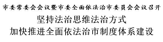 会议强调,要坚持制度治党、依规治党,推进中央党内法规的具体实施,完善我市党内法规制度体系,确保党中央决策部署不折不扣落实到位。政府立法要注重与人大常委会立法规划的有效衔接,聚焦重大国家战略、重大工作举措,立良法、立好法,切实提高立法质量;聚焦经济社会发展现实问题,及时制定出台政府规章,加强地方立法实践探索,健全完善我市法规体系。完善制度化、程序化的行政执法争议协调机制,及时化解行政争议,提高行政执法水平和效率。充分发挥督办工作对法治建设的督促作用,推动中央全面依法治国决策部署落地落实。