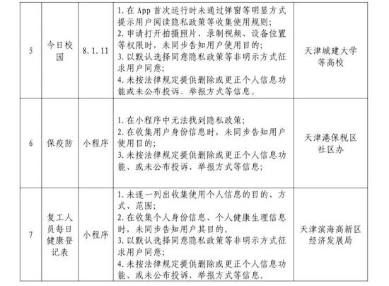 今天,市委网信办发布天津市疫情防控App专项治理情况通报第一期,发现“新冠通”等7个App存在违规收集使用个人信息问题。