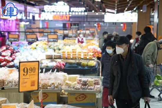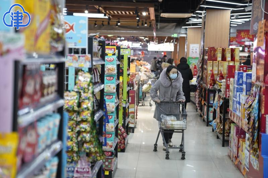 春节临近,备年货成了人们迎接新春的“重头戏”。近日,坐落在北辰区的津惠美超市到处悬挂着红灯笼、中国结,丰富的年货产品应有尽有,前来购物的市民络绎不绝,一派喜气洋洋的景象。