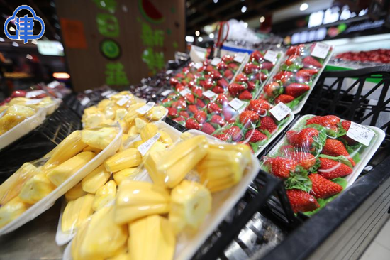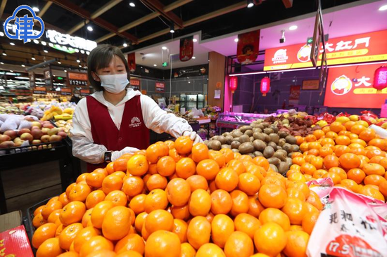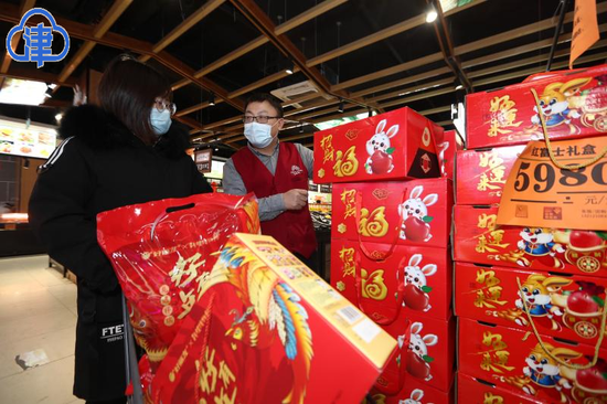 走进超市,浓郁的“年味儿”扑面而来。在超市最显眼的位置,摆满了各色年货,糖果、干果、礼盒等商品琳琅满目。家住盛安园的居民刘女士一大早就赶到超市置办年货,她精心挑选,不一会儿就装了满满一车。她说:“超市年味儿特别浓,货品也十分充足,还有很多促销活动,我囤了好多年货放在家里。”(津云新闻记者 戴涛)
