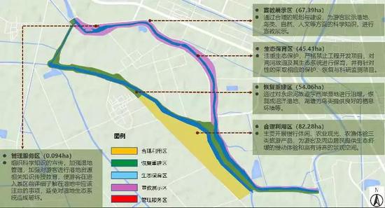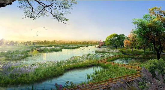 具体规划上,坚持人与自然和谐共生,按照保护第一、科学修复的原则,尊重湿地公园原有面貌和生态系统的完整性,在保护的基础上进行科学修复,将湿地公园划分为五个功能区进行建设,即生态保育区、恢复重建区、宣教展示区、合理利用区和管理服务区,打造集湿地保护、生态修复、文化展示、科普宣教、休闲观光于一体的国家级湿地公园。