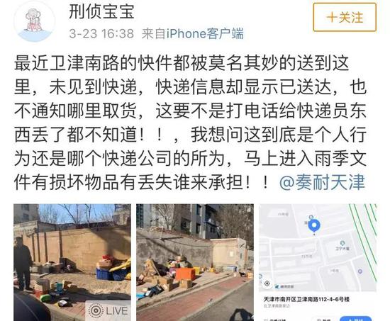 对此,刘女士也向快递公司投诉过,快递公司回复说,这是快递员的个人行为,可能这位快递员承包了几家快递公司送这附近的快递业务,但是没有正规化,还没有门脸,快递公司也接到了很多投诉,也在协调这个事情。