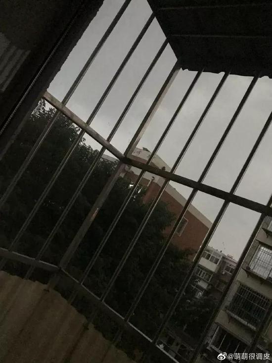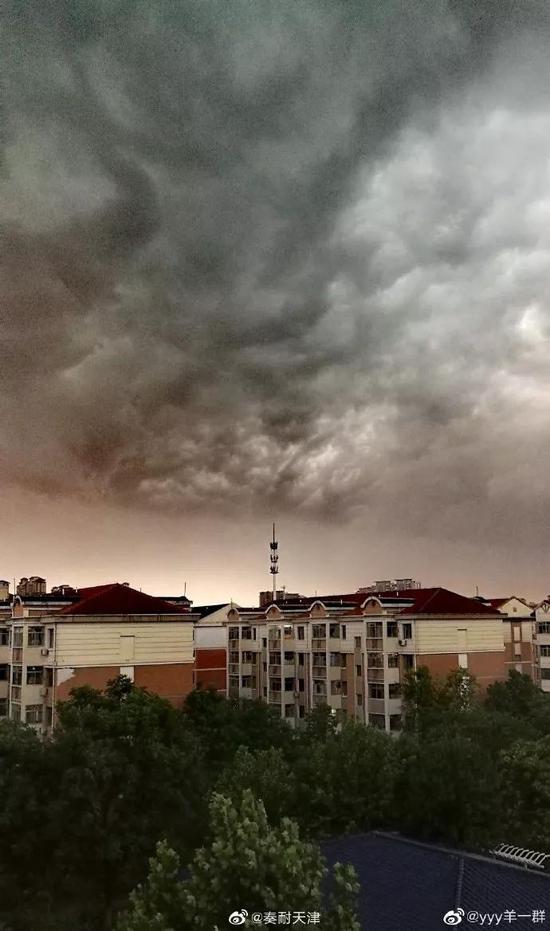 网友@angelacherly:暴风雨前夕的天津,好大一阵妖风飞沙走石,瞬间天黑感觉猪八戒要来。