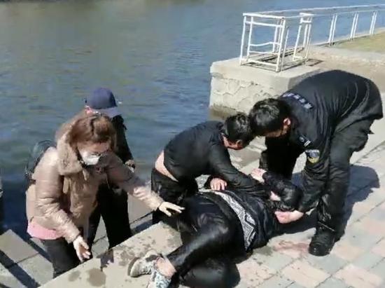 据了解,落水者是一对母子,两人发生口角,推拉之中竟走到河水深处,本能扑救引起岸边大姐的注意。