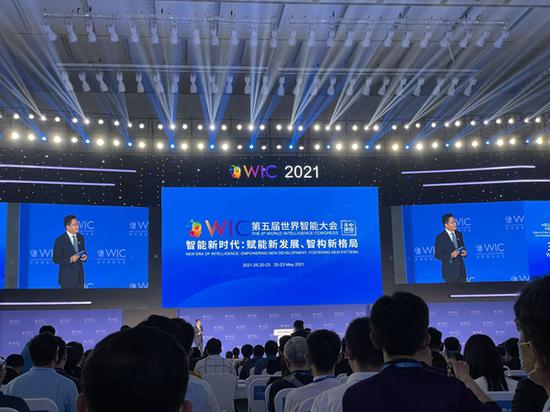 5月20日,以“智能新时代:赋能新发展、智构新格局”为主题的第五届世界智能大会在天津梅江会展中心隆重开幕。[中国网 范俊梅 摄]