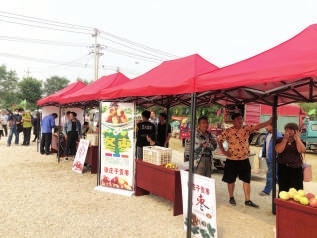 作为小王庄镇农民丰收节的重要组成部分,在沈清庄冬枣交易市场内举办的当地优质特色农产品展销会吸引了大量游人和客商。展销活动以 “四个农业”为特色,农业产业化龙头企业、农民专业合作社、家庭农场及种养大户代表带来的果品、杂粮等特色农产品纷纷亮相,其中以东抛庄的黄金梨、南抛庄的甜桃、沈清庄的冬枣等特色农产品最受欢迎。